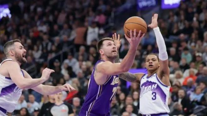 1. NBA常规赛战火再燃,洛杉矶湖人客场以143-135力克犹他爵士,豪取两连胜,继续巩固西部排名。