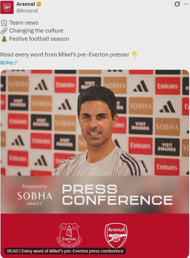 阿尔特塔出席了赛前新闻发布会,我们来看关键内容。
