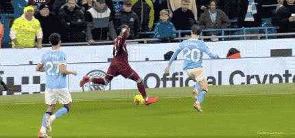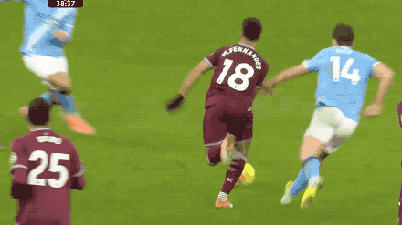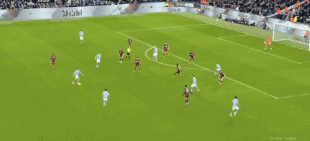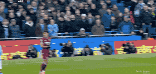 接下来的20分钟,场面相对平淡,曼城完全控制局面,西汉姆联几乎没有办法推进到曼城的30米区域。