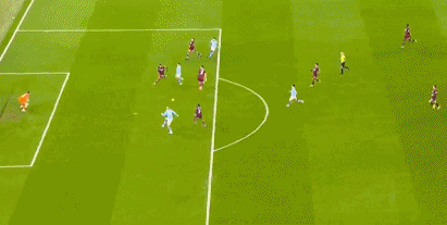 第22分钟,福登右路角球送到后点,格瓦迪奥尔无人盯防头球冲顶,继续高出横梁。